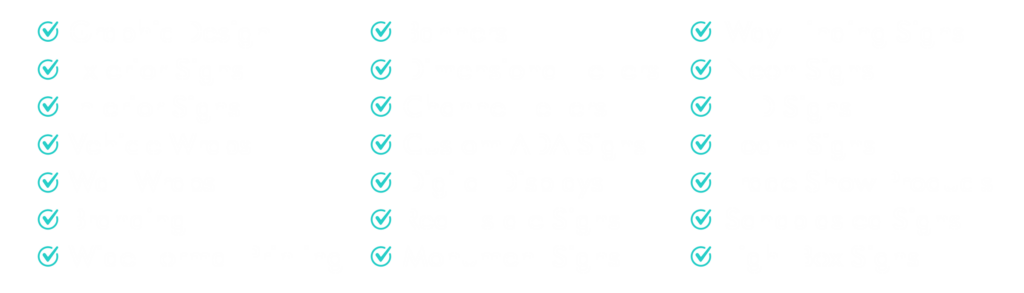 We provide a full range of custom signage, including indoor and outdoor signs, channel letters, LED and illuminated signs, storefront signs, vehicle wraps, banners, window graphics, monument signs, and more.